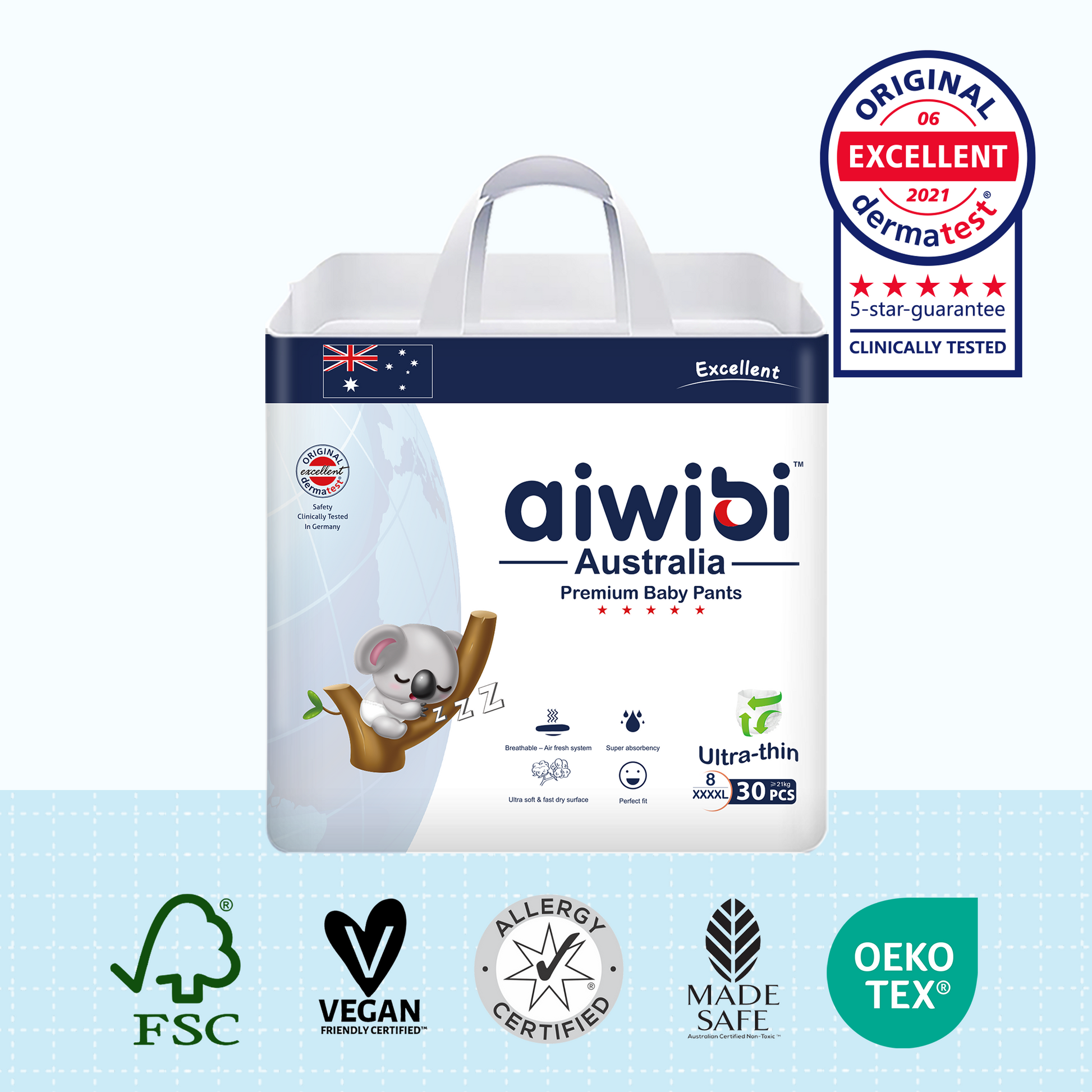 - Aiwibi diapers are certified by the German Dermatological Institute Dermatest, ensuring they are gentle on your baby's skin. We do not add any fragrances, extracts, dyes, or other harsh chemicals, making the diapers odorless and hypoallergenic.