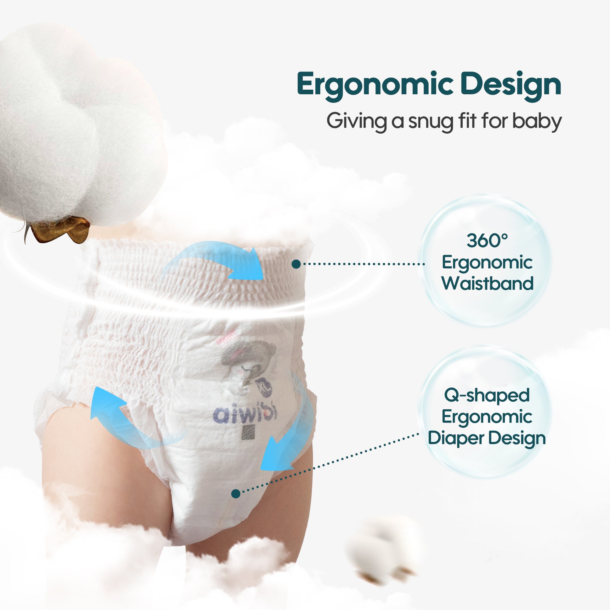 Aiwibi diapers are made using high-quality wood pulp derived from nature. This pulp comes from sustainably managed forests, so while we use natural resources, we also prioritize environmental protection and sustainability. Through fine processing, we maintain the natural absorbency and softness of the material to provide your baby with a comfortable wearing experience while reducing irritation to their sensitive skin.