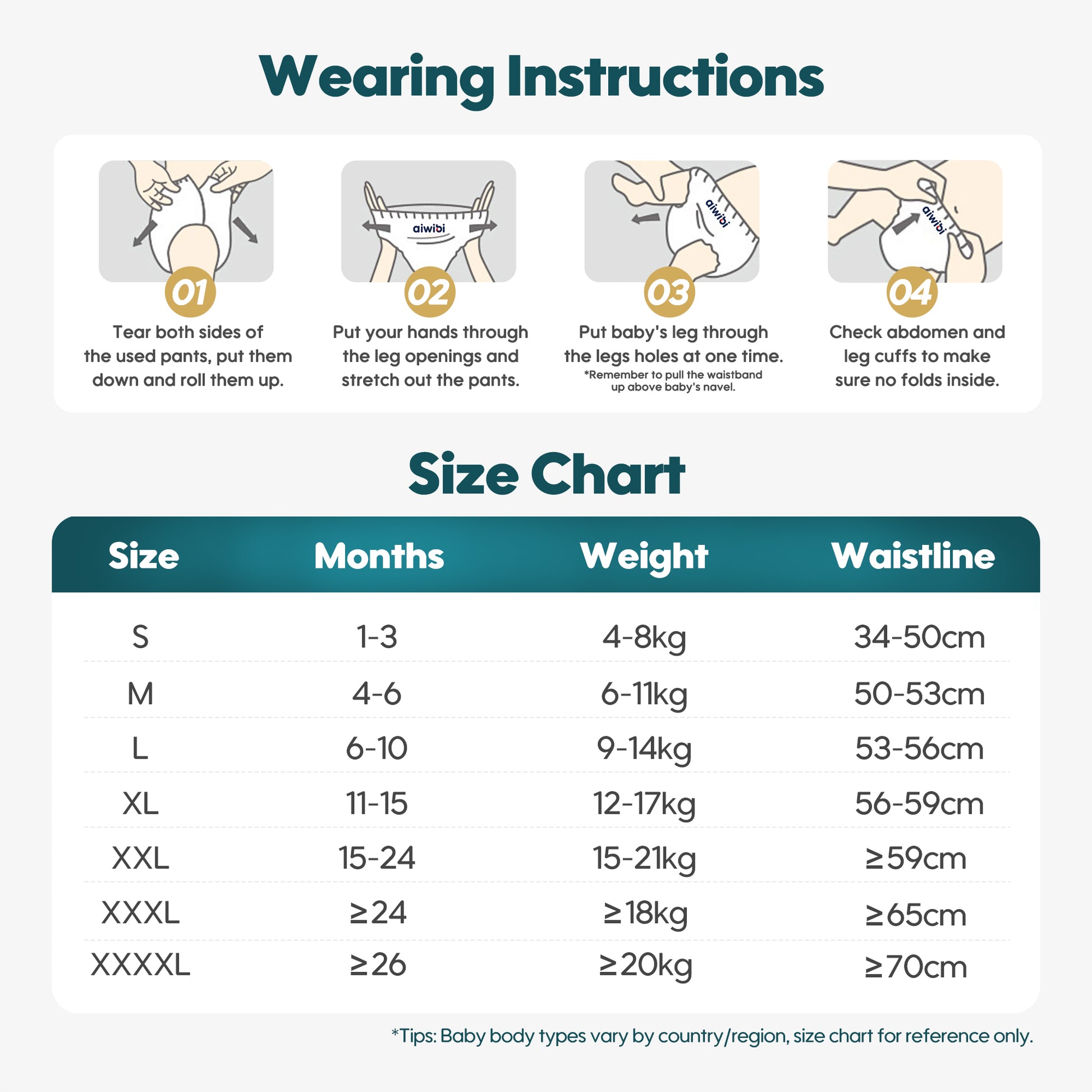As for the difference between boys and girls, traditionally, the absorbent core in boy's diapers is placed more towards the front, and for girls, it's placed more towards the back. However, Aiwibi diapers are designed to work well for both boys and girls thanks to our product adjustments during development.